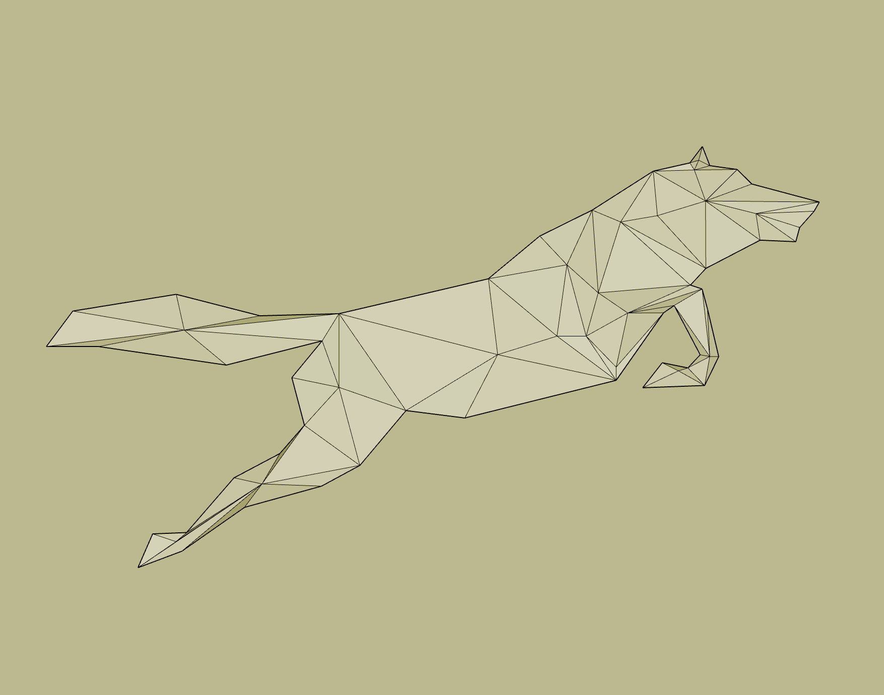 Geometrical wolf Vedlejší produkt většího rozpracovaného obrázku. Vytvořeno ve webovém (webovém!) Google SketchUpu a poupraveno v Krita. Ze série geometrických zvířat. Creation: 2018-05-13 17:54:14 | Authors: Demo
